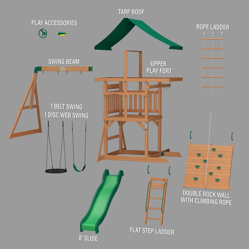 • Climbing Rope Ladder: Over 6-foot-tall rope ladder with wooden rungs offers adventurous climbing fun