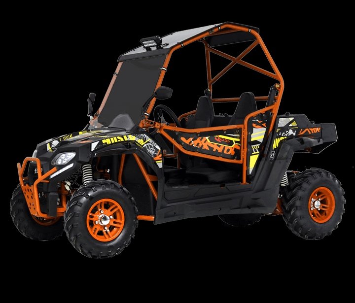 The BMS Avenger 200 EFI Sport Side By Side Utility Terrain Vehicle UTV teatures 8.9 Horsepower, and a 4 Stroke Single-cylinder 200cc Engine.