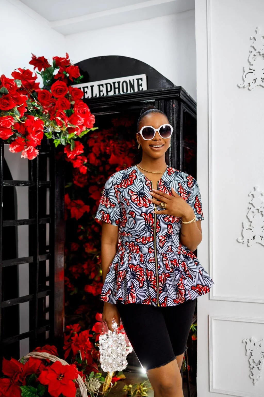 Elevate your wardrobe with the DUNNI African Print Front Zip Peplum Top. Its vibrant print, lined fabric, and chic peplum design will have you turning heads. Show off your boss style and step up your fashion game with this must-have top. Zip up and get ready for all the compliments.