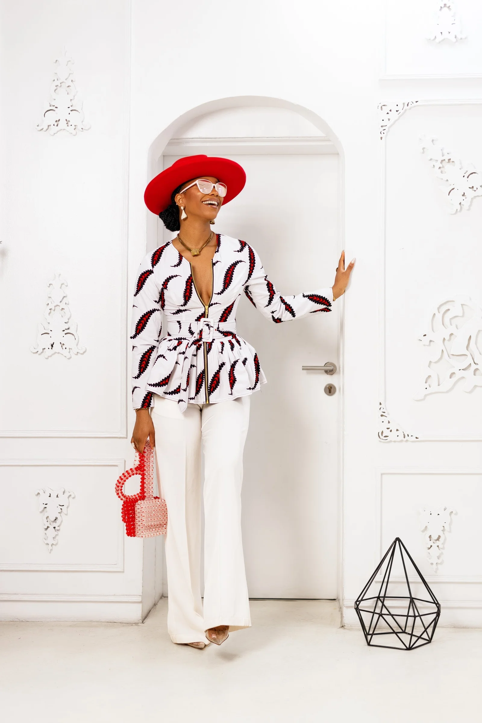 Stay fashionable and comfortable in the cold season with our FAYO AFRICAN PRINT FRONT ZIP TOP. This top exudes chic simplicity, perfect for pairing with jeans. Whether you opt for black boots or heels, this top will elevate your style effortlessly. Don’t sacrifice comfort for fashion with our versatile top.