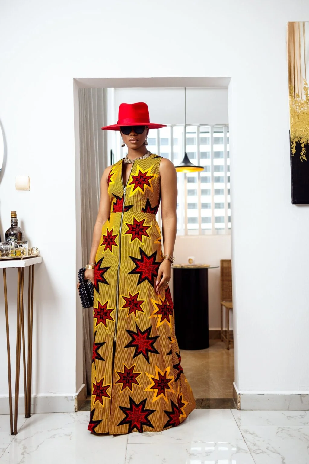 Experience the perfect combination of fashion and functionality with our HALIMA AFRICAN PRINT MAXI FRONT ZIP DRESS! The zipper easily transforms into a lightweight kimono, while the sleeveless style and side pockets provide effortless comfort. Embrace the versatility of this must-have maxi dress!