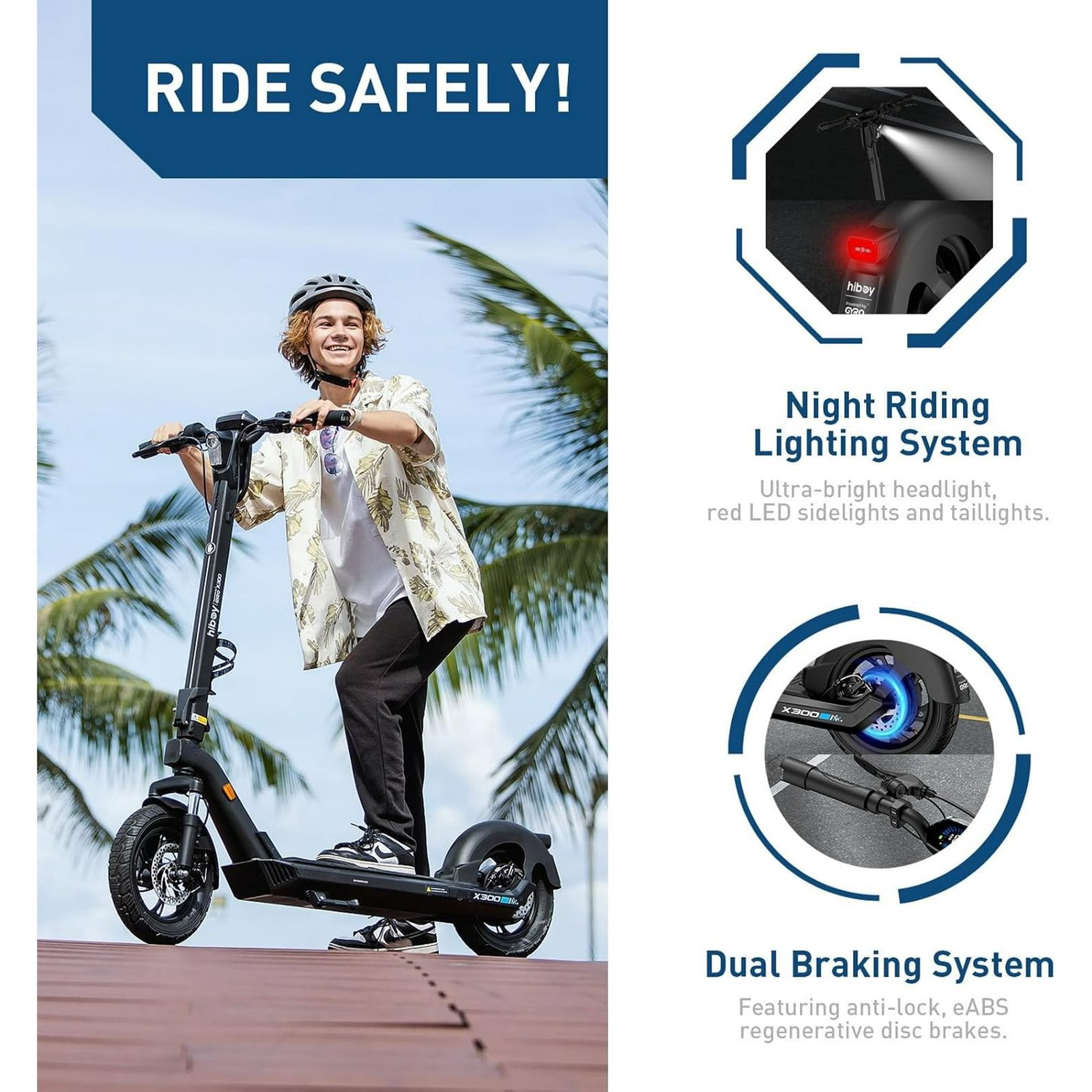 - Ultimate Stability and Speed – X300 electric scooter has three different riding modes (Eco: 13MPH, D: 18MPH, S: 23MPH). Dual braking system(disc braking and eABS regenerative anti-lock braking) ensures your safety and brings you a more comfortable and safer riding experience.