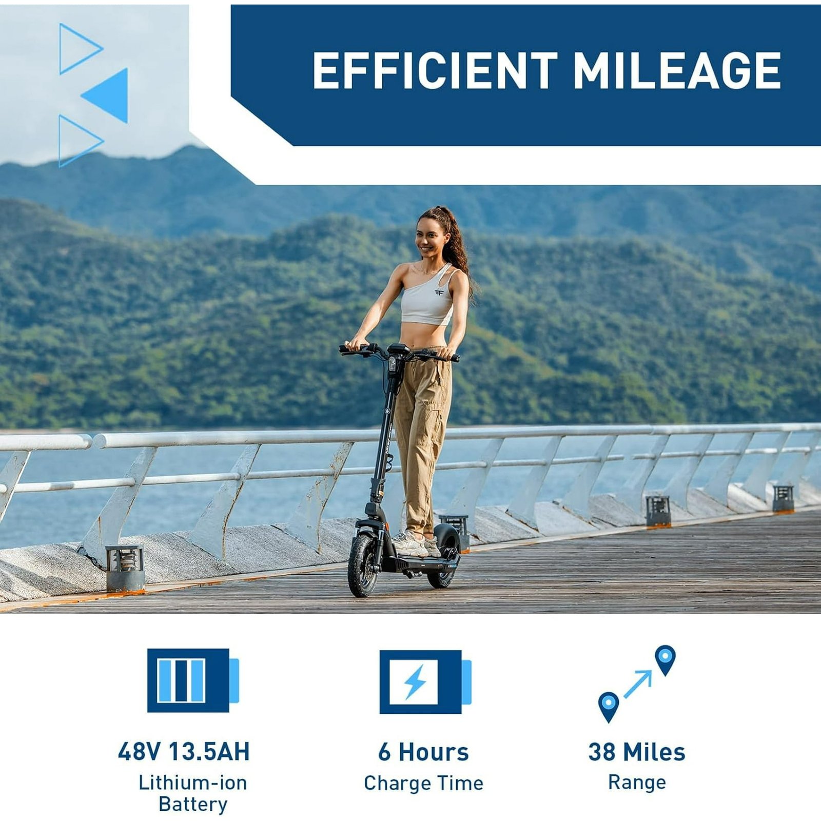 - Powerful Motor & Long Battery Life – The 500W(Peak 700W) electric brushless hub motor allows for speeds up to 23mph. High capacity battery with a Max travel range of 38 miles under specific conditions.Our product has passed stringent UL2272 testing.