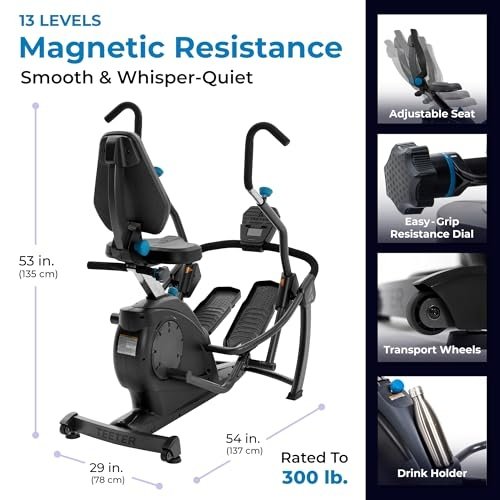 • ZERO-IMPACT EXERCISE: Ideal for all fitness levels. The natural stepping motion and comfortable seated position eliminates stress on the joints and back while delivering a total body, fat-burning cardio workout. A great exercise option for those with Arthritis, Parkinson’s or MS
