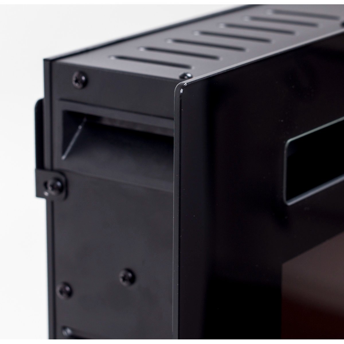 • A slim frame that features a large fireplace viewing area with bright LED flames.
